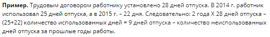 Если у работника за прошлые годы есть неиспользованные дни отпуска, то их количество определяется следующим образом: