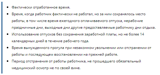 Важно! Периоды работы, составляющие менее половины месяца, исключаются из подсчета, а излишки, составляющие не менее половины месяца, округляются до полного месяца.