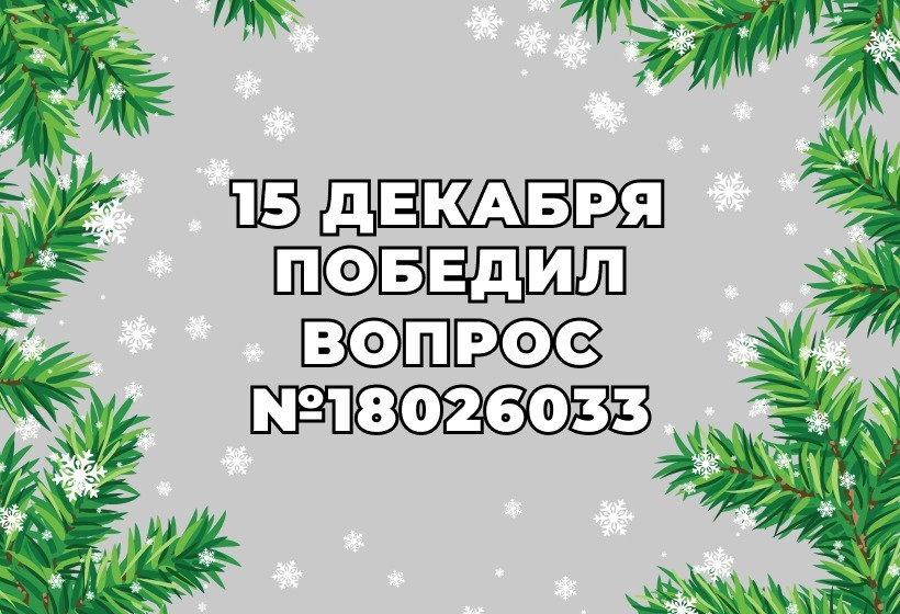 Наша новогодняя акция, в рамках которой мы разыгрываем деньги между авторами вопросов юристам, продолжается. Так как предыдущий победитель не забрал свой приз, 15 декабря мы разыграли 20 000 рублей. Наш сегодняшний счастливчик - автор вопроса №18026033.