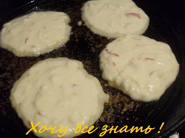 -Обжарить оладушки сначала с одной, а потом с другой стороны, перевернув их при помощи вилочки и ножа или специальной лопаточкой.