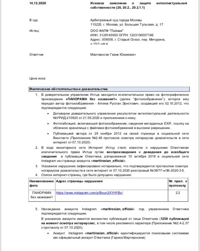 Гарик Мартиросян в 2018 г. зачем-то разместил в своем аккаунте в Instagram**** фото «Панорама без названия-1», права на которое принадлежат Руслану Аптиеву.