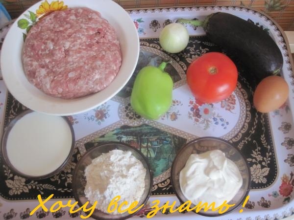 Для приготовления баклажанной мусаки с мясом нам понадобится (я использую прямоугольную форму 17 на 24 см и высотой 8 см):