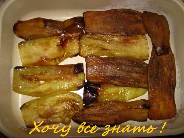 Берём форму, в которой будет готовиться наша мусака, и на самое дно выкладываем половину готовых баклажанов.