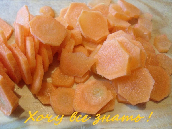 -Морковь помыть, почистить, нарезать кружочками или соломкой (можно натереть на тёрке).