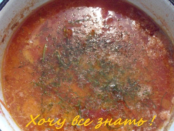-Выключить плиту. Добавить в борщ приправы, сушёную зелень и дать ему настояться.