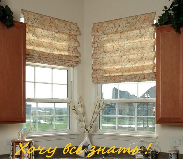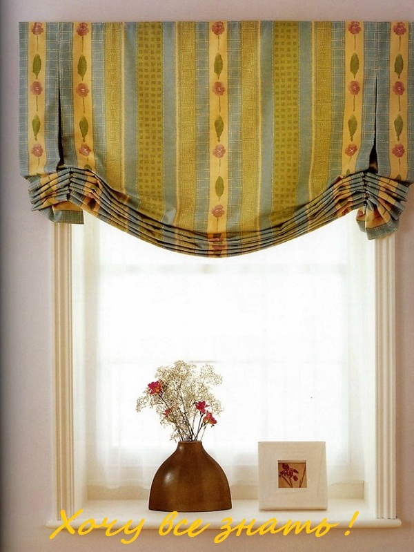 • Для высоких окон целесообразно использовать римские шторы. Они закладываются в складки на две стороны с помощью шнура, протянутого с изнаночной стороны по диагонали.