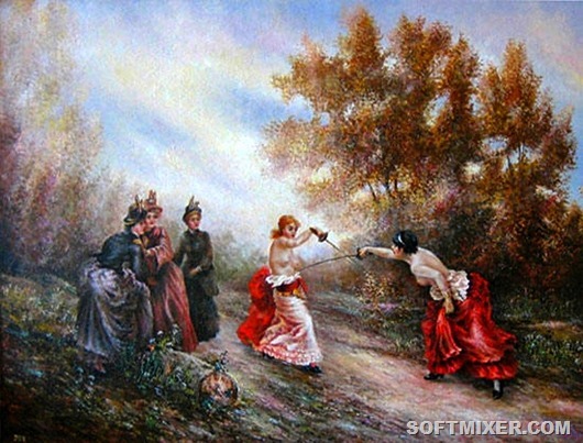 Дуэль считается прерогативой мужчин, но это мнение ошибочное. Женщины тоже были не прочь сразиться друг с другом, более того – дуэли между ними были не столь редки и, по большей части, намного более кровавыми и изощренными…