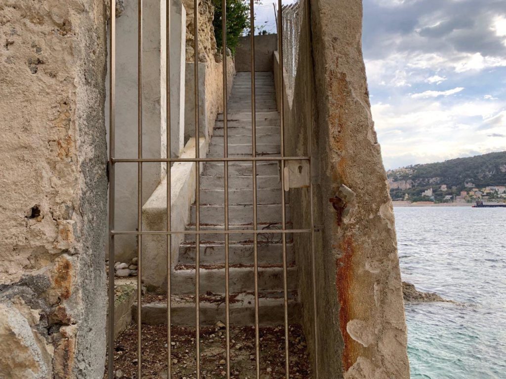 Мы добрались до подъёма, ведущему от берега к вилле. Путь преградили каменные завалы и стальная решётка. По периметру территория, принадлежащая Виктору Рашникову, обнесена колючей проволокой.