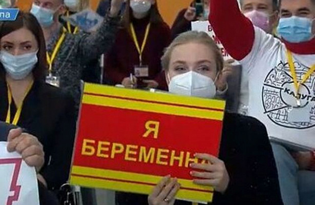 В Общественной палате предложили наказать пришедшую на пресс-конференцию Владимира Путина журналистку Александру Безукладову. Причина в «беспардонной лжи и фальсификации», когда журналистка появилась на встрече с президентом с табличкой «Я беременна».