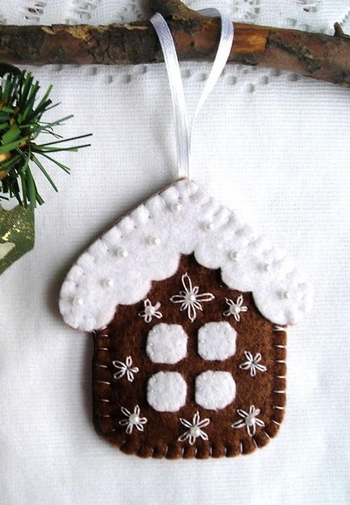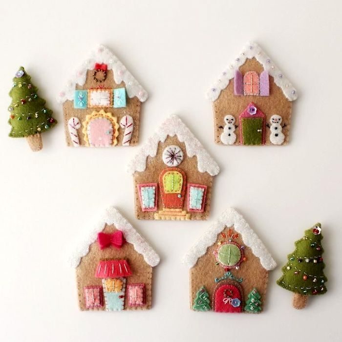Уютные фетровые домики в качестве елочных украшений