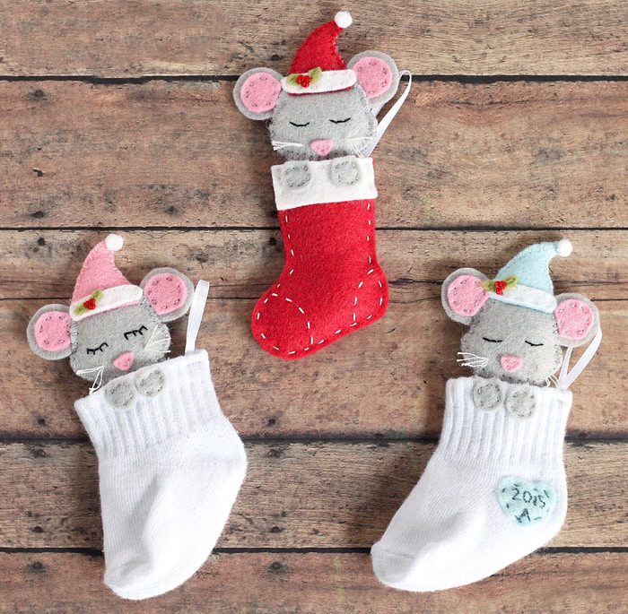 Мыши-носочки — гениальная идея елочных украшений из фетра