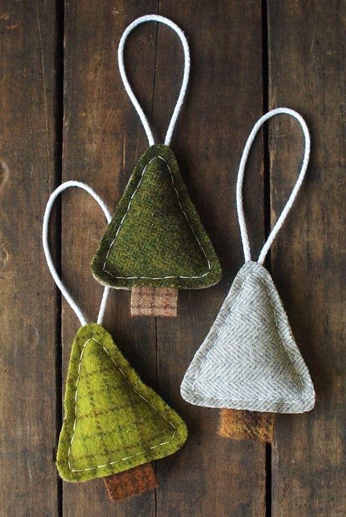 Елочные украшения из фетра в виде треугольника прекрасны и их очень легко сделать самому, вы не потратите много времени