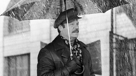 Хорошо получился на фото и этот талантливый актер. Снимок сделан во время творческого процесса над картиной «Ах, водевиль, водевиль». Пуговкин стоит под дождем, но прячется от него под зонтом.