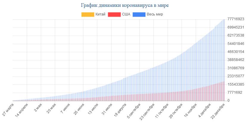 На сегодня, 22.12.2020, в мире всего зарегистрировано: