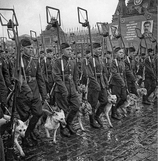 В годы Великой Отечественной войны в армию было призвано около 68000 собак. Из них было сформировано 168 отрядов.