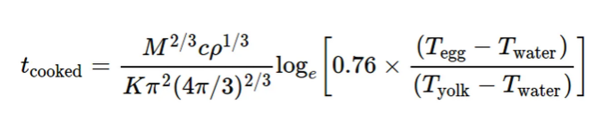 Чарльз Уильямс предложил формулу, которая учитывает все эти факторы. В ней есть несколько переменных, их нужно задать вручную. Это масса, коэффициент теплопроводности яйца, соотношение массы желтка и белка. Рядовые граждане вряд ли будут заниматься вычетом сложных формул с логарифмами. Для них разработан онлайн-калькулятор.