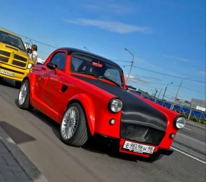 Начнем с Москвичей.. Вот вариант на базе 400-го..сразу заметно, что он шире оригинала, и в этом его шарм уже, плюс большие колеса.. и выглядит эффектно!)