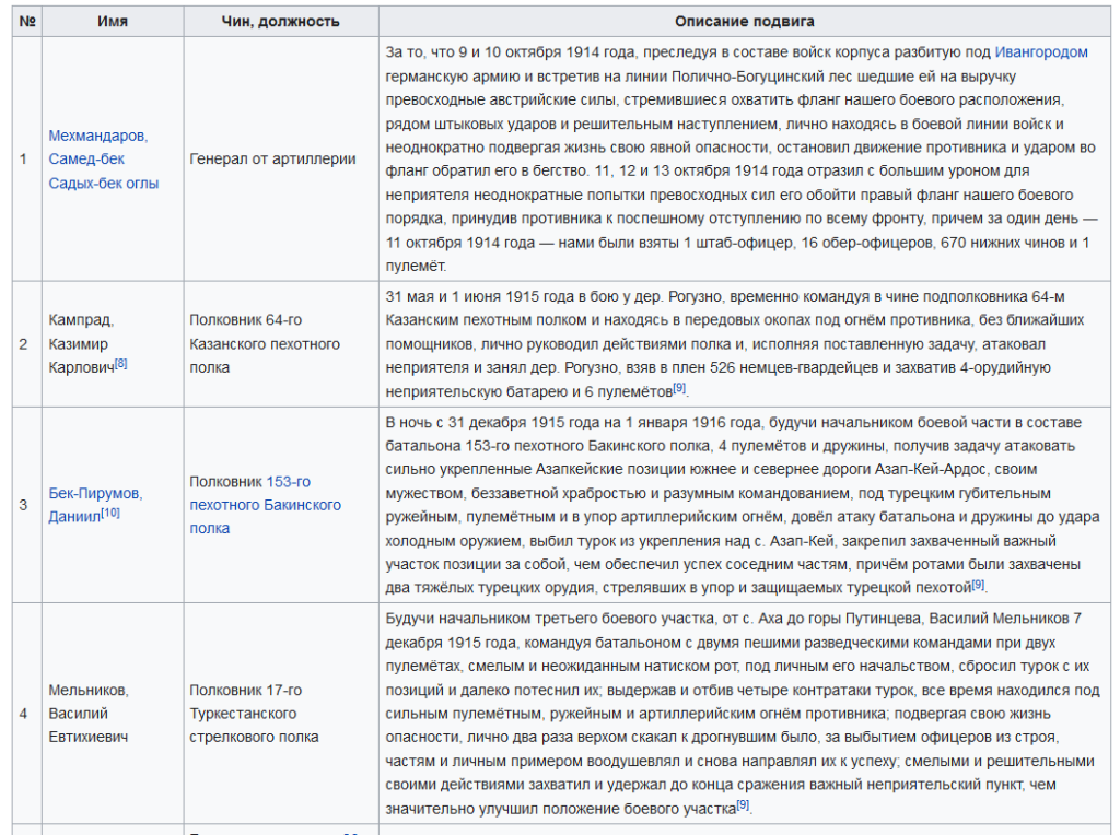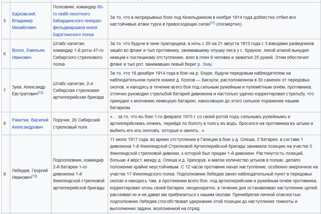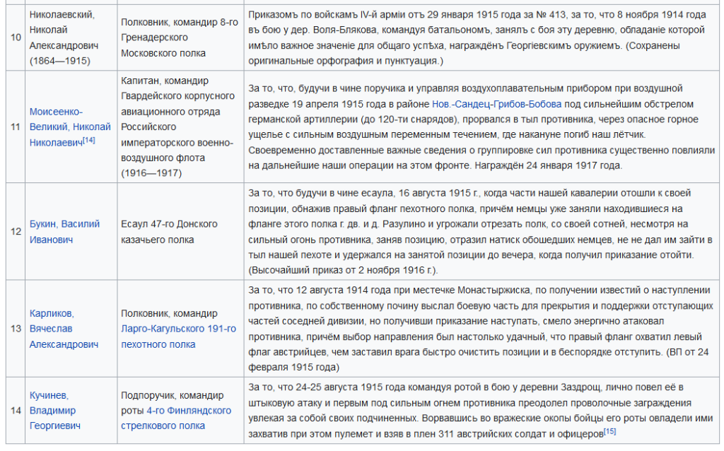 Примеры награждений во время Первой мировой войны и описания соответствующих подвигов.