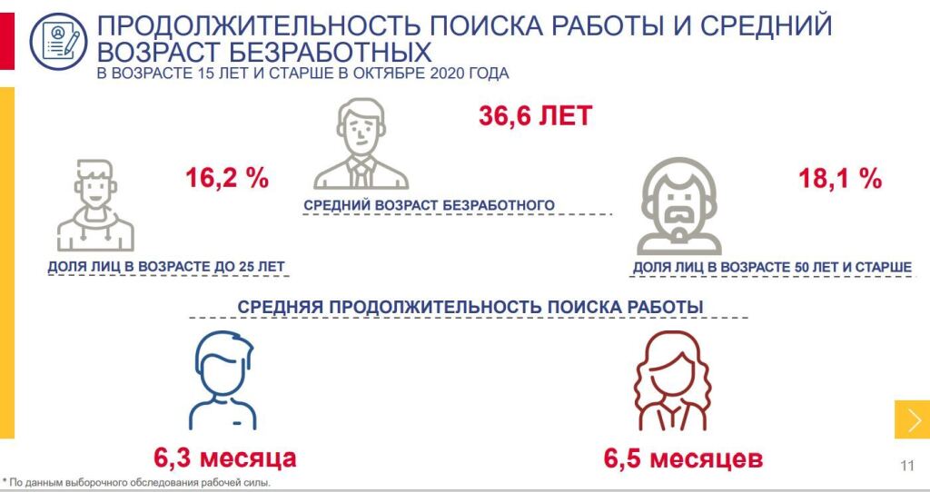 Росстат раскрыл данные о безработице за октябрь 2020 года, включая среднюю продолжительность поиска работы.
