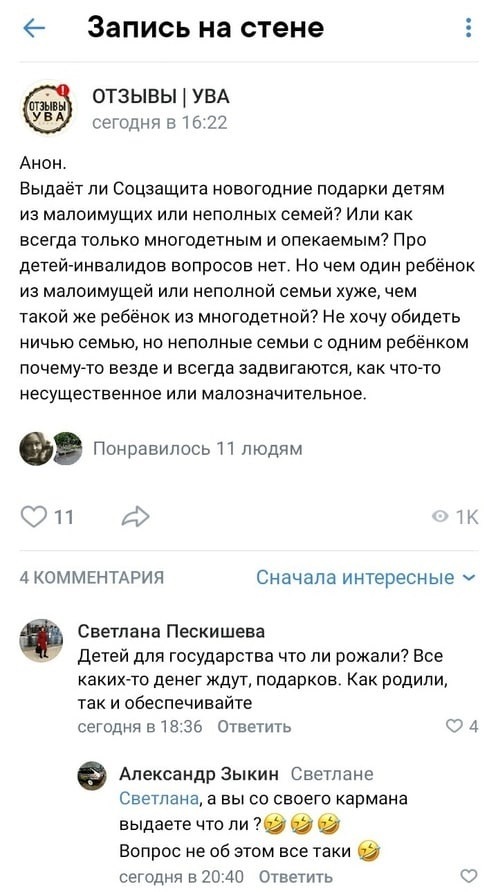 Удмуртская чиновница посоветовала малоимущим семьям не рассчитывать на государство. Такой ответ от Светланы Пескишевой получили подписчики местного паблика на вопрос о новогодних подарках детям.
