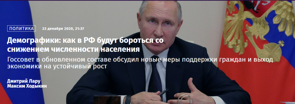Решить демографические проблемы в России можно с помощью улучшения жизненных условий в регионах и реализации социальных программ. Об этом «Известиям» заявили эксперты по итогам совместного заседания Госсовета и Совета при президенте по стратегическому развитию и национальным проектам. Его Владимир Путин провел 23 декабря. Учитывая тот факт, что сейчас только в 11 регионах наблюдается естественный прирост населения, достичь положительной динамики по всей стране в ближайшие годы будет крайне сложно. Во время мероприятия обсуждались и другие важные вопросы, в том числе повышение темпов экономического роста, расселение аварийного жилья и цены на стройматериалы. Между тем глава государства призвал «инфраструктурно сшивать» страну и поддержал идею сделать 31 декабря выходным днем.