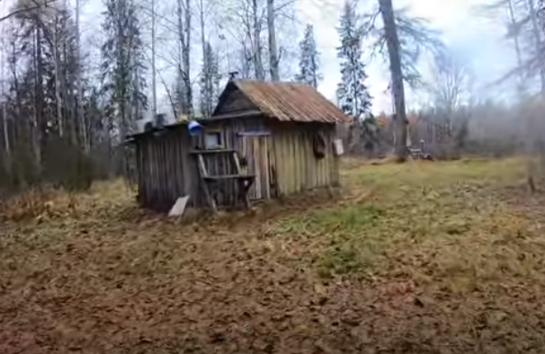 Вот так выглядит охотничья изба в тайге, там ночуют охотники и ребята не раз рассказывали, что ночами их посещали медведи: сопя и пыхтя бродили вокруг, бывали случаи, что и взламывали двери, наводили бардак и уничтожали съедобные припасы.