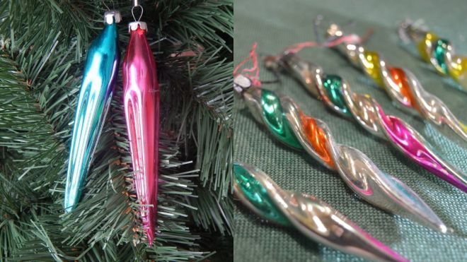 Разных форм, прямые, извилистые, цветные. Такие сосульки были на всех ёлках.
