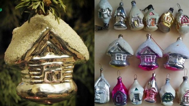 Было множество вариантов такой игрушки. Такой домик был практически на каждой советской елке.