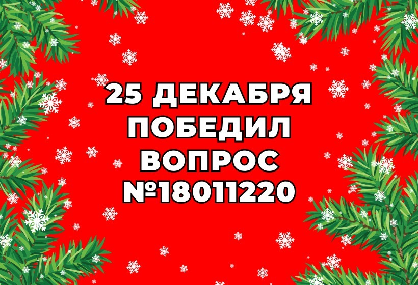 Призовой фонд акции «5 000 рублей за Ваш вопрос» 25 декабря увеличился до 60 000 рублей за счет денег, которые не забрал победитель от 22 декабря! Теперь сорвать джекпот имеет шанс автор вопроса №18011220.