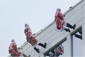 25 декабря на крышу Морозовской больницы в Москве спустился необычный десант из целого отряда Дедов Морозов. А затем с помощью альпинистского снаряжения зимние волшебники спустились к окнам, чтобы поздравить маленьких пациентов.