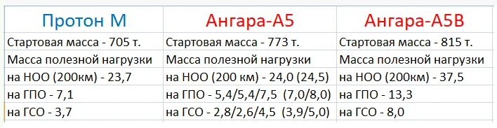 Вообще, начало разработки "Ангары" датируется 1992 годом и опять-таки недоброжелатели снова могут только булькать от злости, но сказать, что это всё "наработки СССР", которые "просто" используются уже не могут. В чём заключается уникальность этой разработки. "Ангара" - это целое семейство ракет, собираемых по модульному принципу и одинаковых по конструкции, но имеющих различную грузоподъёмность, зависящую только от количества установленных универсальных ракетных модулей. До "Ангары" все большие по массе спутники запускались с помощью тяжёлой ракеты-носителя "Протон М", разработанной ещё в СССР. Ракета безусловно хорошая, но из недостатков можно отметить, что в ней используется крайне ядовитое топливо - "гептил", которое в случае аварии попадало в окружающую среду. В чём его опасность, вы можете прочитать отдельно по этой ссылке. На "Ангаре" же устанавливается двигатель РД-191 производства "Энергомаш", использующий экологически чистое топливо: смесь керосина и кислорода, а ракета Ангара-А 5 В в третьей ступени использует идеальное топливо: кислород-водород, после сгорания которого в атмосфере образуется только водяной пар. Посмотрите, какие грузы способны выводить "Ангара-А 5" и "Ангара-А 5 В" в сравнении с последней модификацией ракеты-носителя "Протон М":