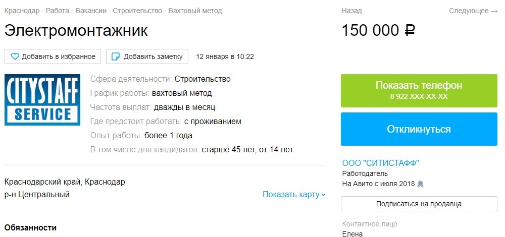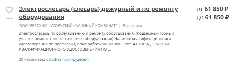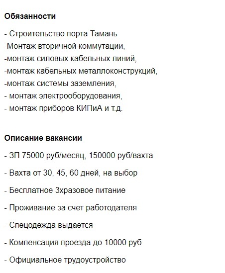 Вот вам наглядный пример вакансии, где с удовольствием возьмут мужиков от 45 лет. Причём это не фэйк, ещё до Нового года я был на Тамани, двое моих бывших электромонтажников там работают. Одному 52 года, второму 58 лет.