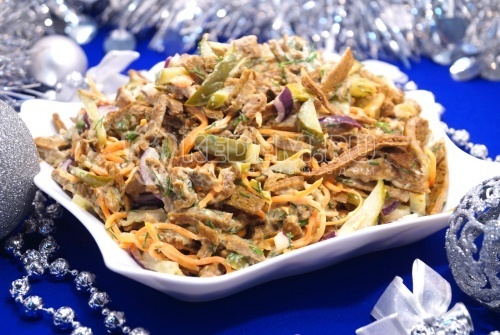 Новогодний салат «Зимушка», это идеальное сочетание вкуса при минимуме затрат. Любители куриной печени особенно оценят этот нежный и аппетитный салат.