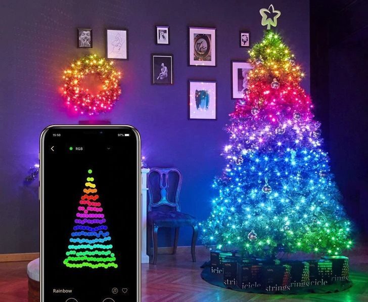 Презент для тех, кто не расстается со своим смартфоном ни на секунду. Этой гирляндой можно управлять с помощью специального приложения и даже синхронизировать мигание лампочек с музыкой.
