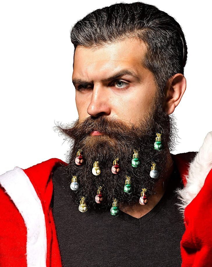 Среди ваших друзей и коллег, возможно, есть брутальные мужики, которые очень внимательно следят за своей роскошной бородой. Нам кажется, что такие необычные новогодние украшения для густой растительности на лице могут быть уместным и смешным подарком.