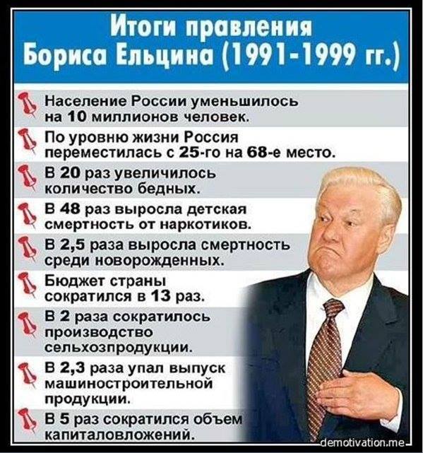 И ещё,я говорю про первый срок президентства Бориса Ельцина, в 1991 г.Но ты всё равно не поймёшь.