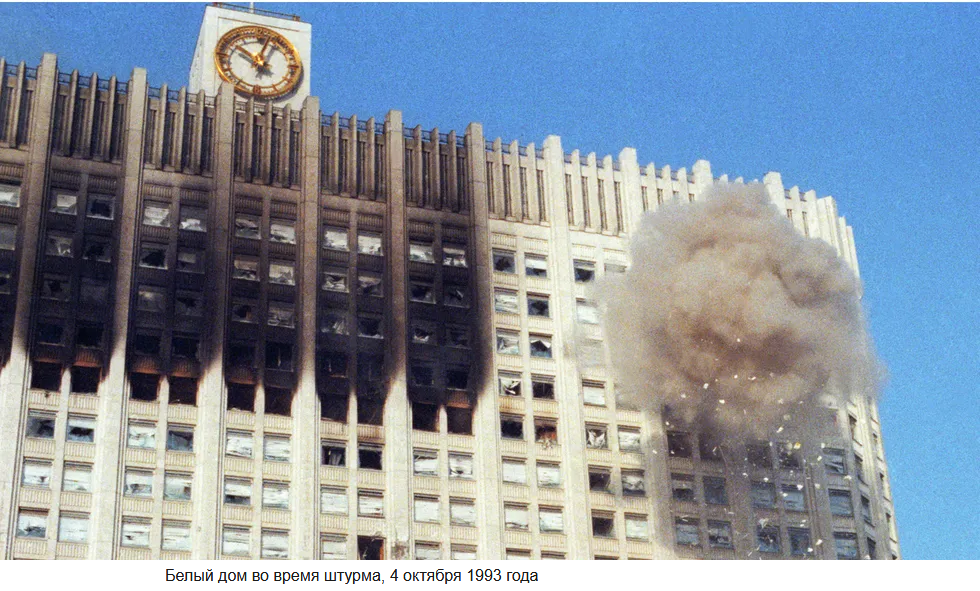 3 и 4 октября 1993 года политическое противостояние президента Бориса Ельцина с вице-президентом Александром Руцким и председателем Верховного совета Русланом Хасбулатовым закончилось вооруженными столкновениями в Москве. Конфликт начался в декабре 1992 года — Съезд народных депутатов во главе с Хасбулатовым пытался поправками в конституцию РСФСР уменьшить полномочия президента, а Ельцин отвечал указами, укрепляющими его власть. 21 сентября 1993-го Ельцин подписал указ № 1400 о роспуске Верховного совета. Большинство депутатов во главе с Хасбулатовым отказались подчиняться и забаррикадировались в Доме советов, в здании, где сейчас находится правительство РФ. 3 октября начались столкновения, сторонники ВС прорвали осаду Белого дома и пытались захватить телецентр в Останкино. 4 октября верные Ельцину войска взяли Дом советов штурмом. В эти два дня в столице погибло 124 человека, 348 получили ранения. После победы Ельцина была принята современная Конституция с очень большими полномочиями у президента и с урезанными — у парламента. Спустя 25 лет после этих событий «Медуза» вспоминает некоторых главных их участников с обеих сторон.
