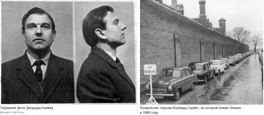 Свой срок Джордж Блейк начал отбывать в лондонской тюрьме Вормвуд-Скрабс. Через пять лет ему удалось бежать при помощи своего сокамерника, ирландца, отбывавшего срок за отправку по почте бомбы полицейскому констеблю, и двух антивоенных активистов. Затем его в переоборудованном фургоне с потайным багажным отделением перевезли паромом через Ла-Манш в Европу, где он перешел границу между ФРГ и ГДР. Оттуда его переправили в Москву, где он и жил до самой смерти.