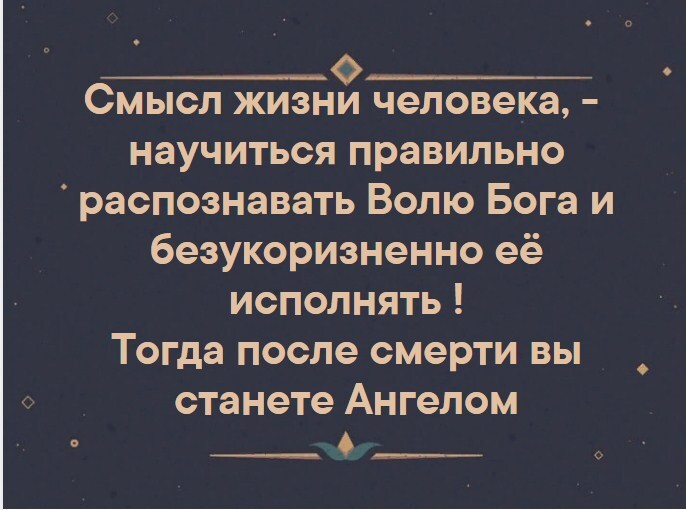 Смысл жизни человека, - научиться самому, правильно и без посредников, распознавать Волю Бога и безукоризненно её исполнять!
