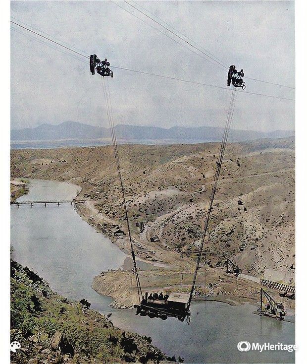 А вот с чем нет никаких исторических разночтений, так это с местом ситуации и самой ситуацией. Перед тобой фотоснимок переправы парового локомотива через каньон реки Рио-Гранде на канатах в американском штате Нью-Мексико.