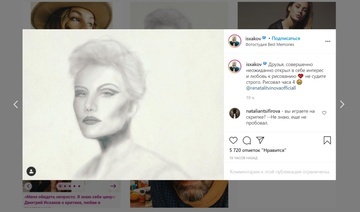 Видимо, чтобы успокоиться, Исхаков принялся рисовать. Ему пришло в голову изобразить не кого-нибудь, а сразу Ренату Литвинову. И ему удалось не только точно изобразить актрису, но и передать ее романтический загадочный образ.
