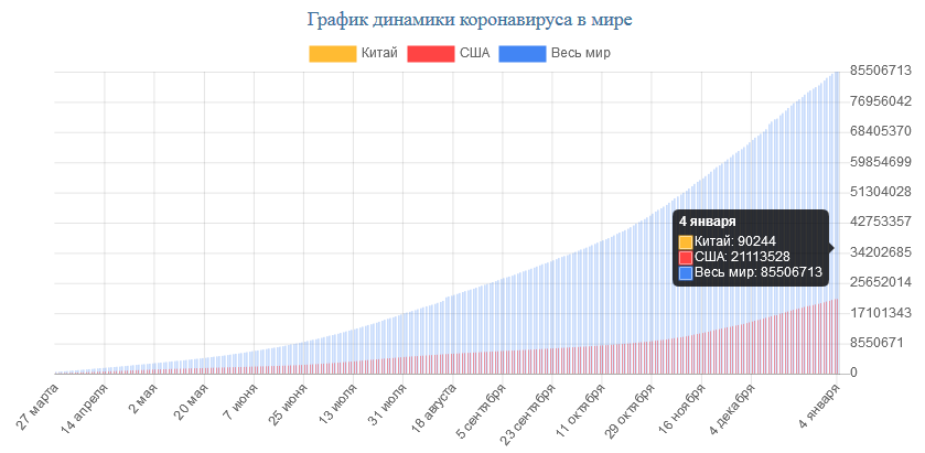 На сегодня, 5.01.2021, в мире всего зарегистрировано: