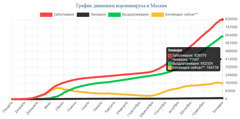 На сегодня, 5.01.2021, в Москве всего зарегистрировано: