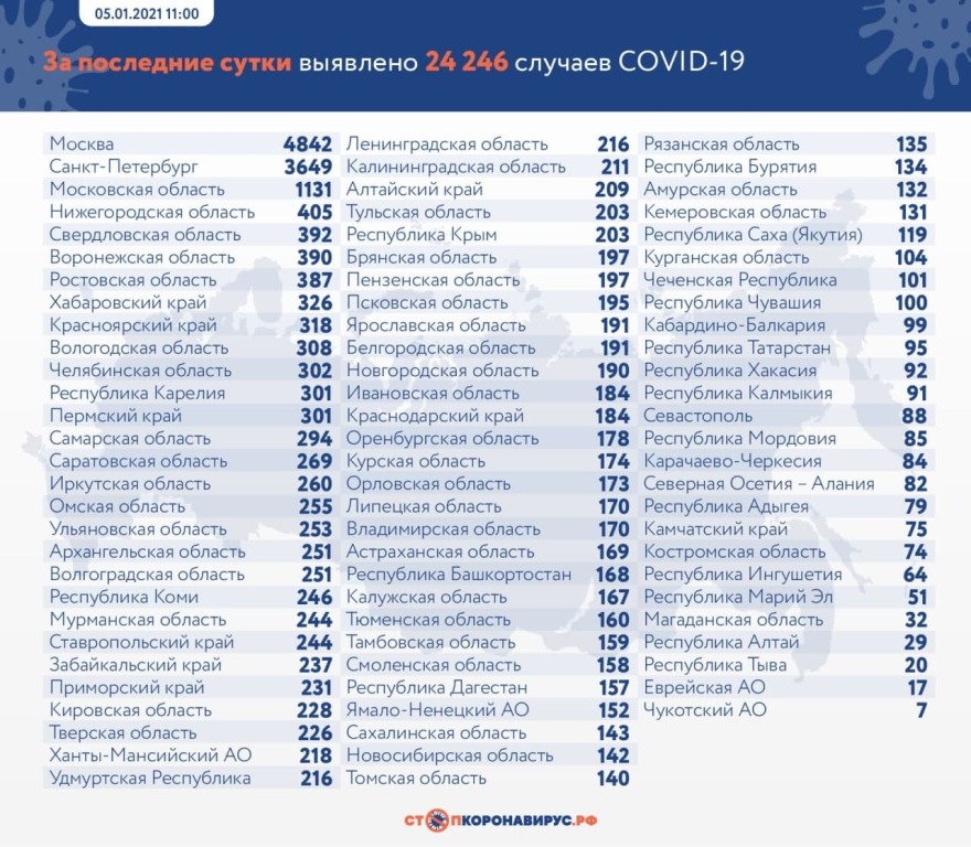 Коронавирус: статистика коронавируса в России 5 января 2021 года. Сколько заболевших на сегодня?