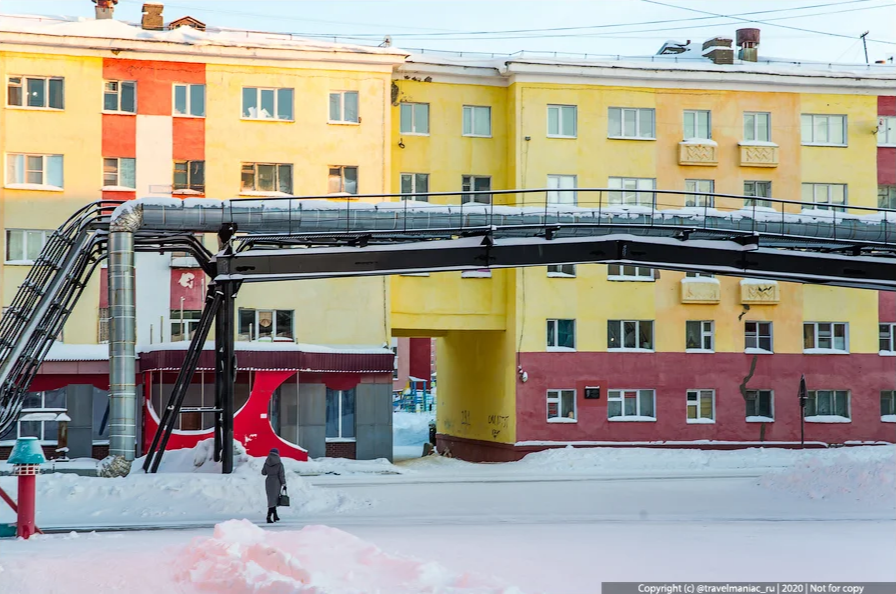 На фото город Дудинка, север Красноярской области. Город, который находится за Полярным кругом и в котором среднегодовая температура составляет …-10 градусов Цельсия.