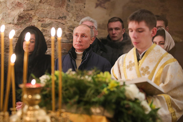 Информационные порталы сообщают, что Путин отстоял рождественское богослужение в уникальном островном храме XIII века в Новгородской области - церкви Николая Чудотворца на Липне.