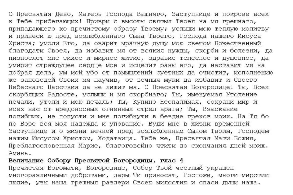 Молитва в большой праздник Собора Пресвятой Богородицы 8 января 2021 года