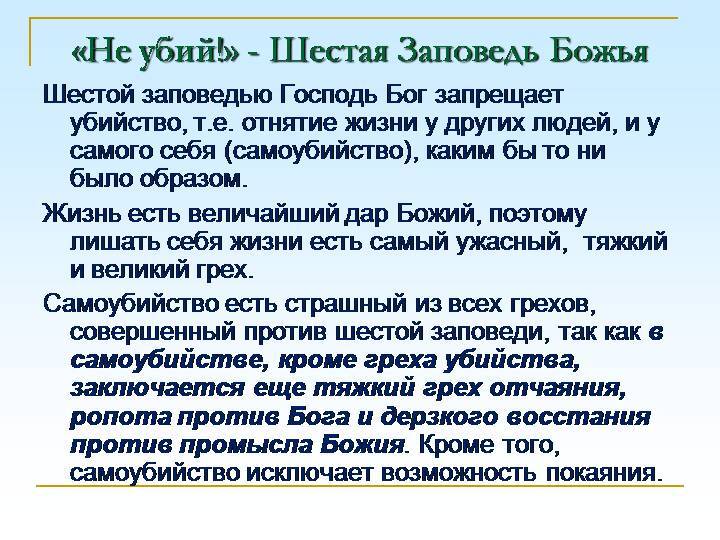 Шестая по счету заповедь на старинный манер звучит: "Не убий".