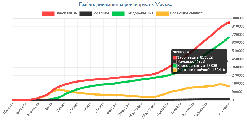 На сегодня, 10.01.2021, в Москве всего зарегистрировано: