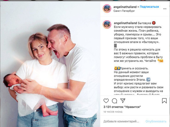 В первую очередь женщина планирует разделить обязанности по дому. Чтобы была возможность отдыхать обоим родителям. А также Ангелина хочет продумать совместный с супругом отдых без детей. Ну и основной акцент жена Меньщикова рассчитывает сделать на сексуальные отношения. В планах женщины масса экспериментов в этой сфере. Она хочет сделать интим максимально насыщенным.
